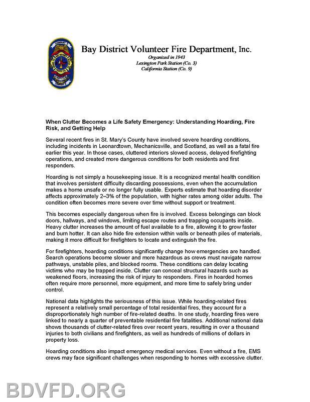 All text, photos, and any other content on this website are protected by copyright law. Reproduction, duplication, or any form of content replication is strictly prohibited without prior written permission from Bay District VFD.