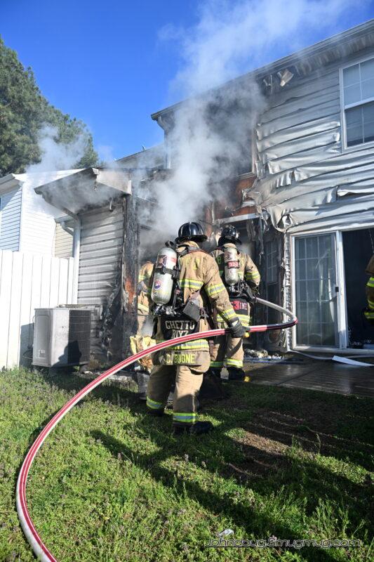 Upon arrival, first-due units observed active fire conditions extending from the rear of the residence. Firefighters immediately began deploying hose lines while securing a nearby hydrant to establish a reliable water supply. Command was established within minutes, and crews initiated an aggressive fire attack.