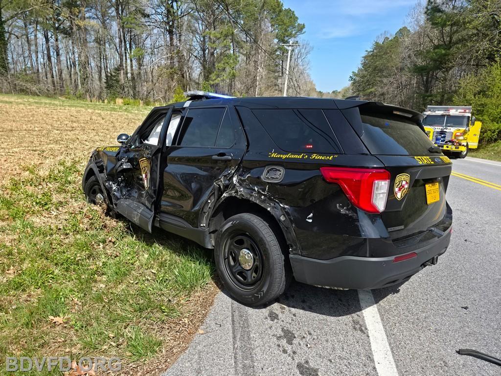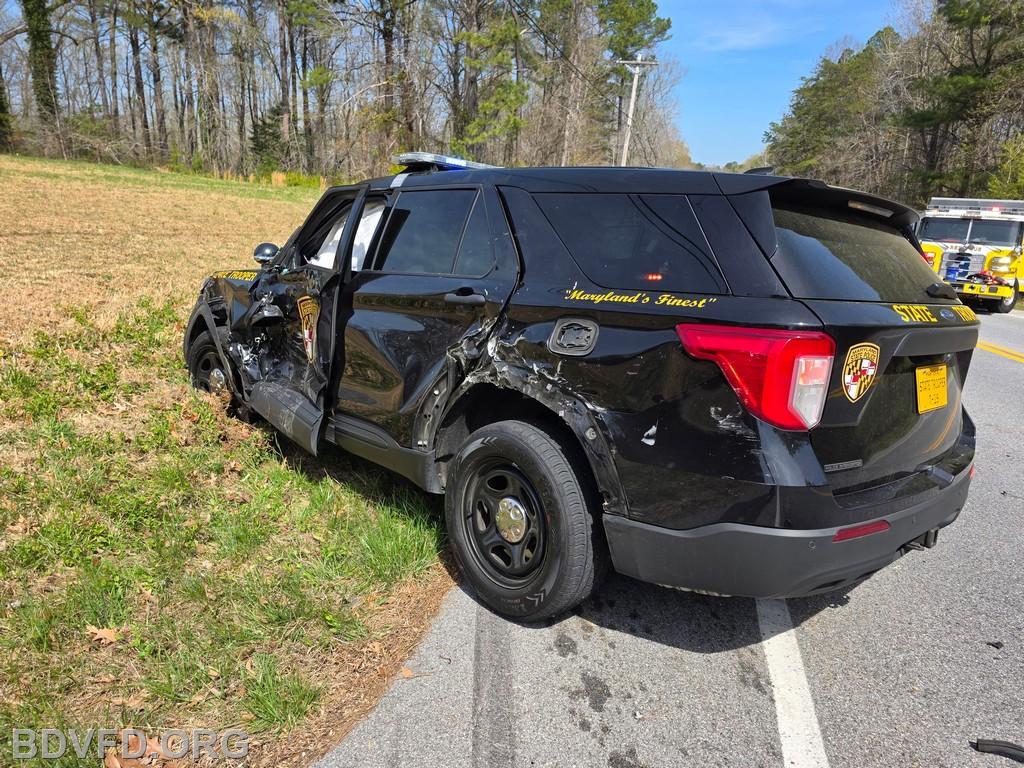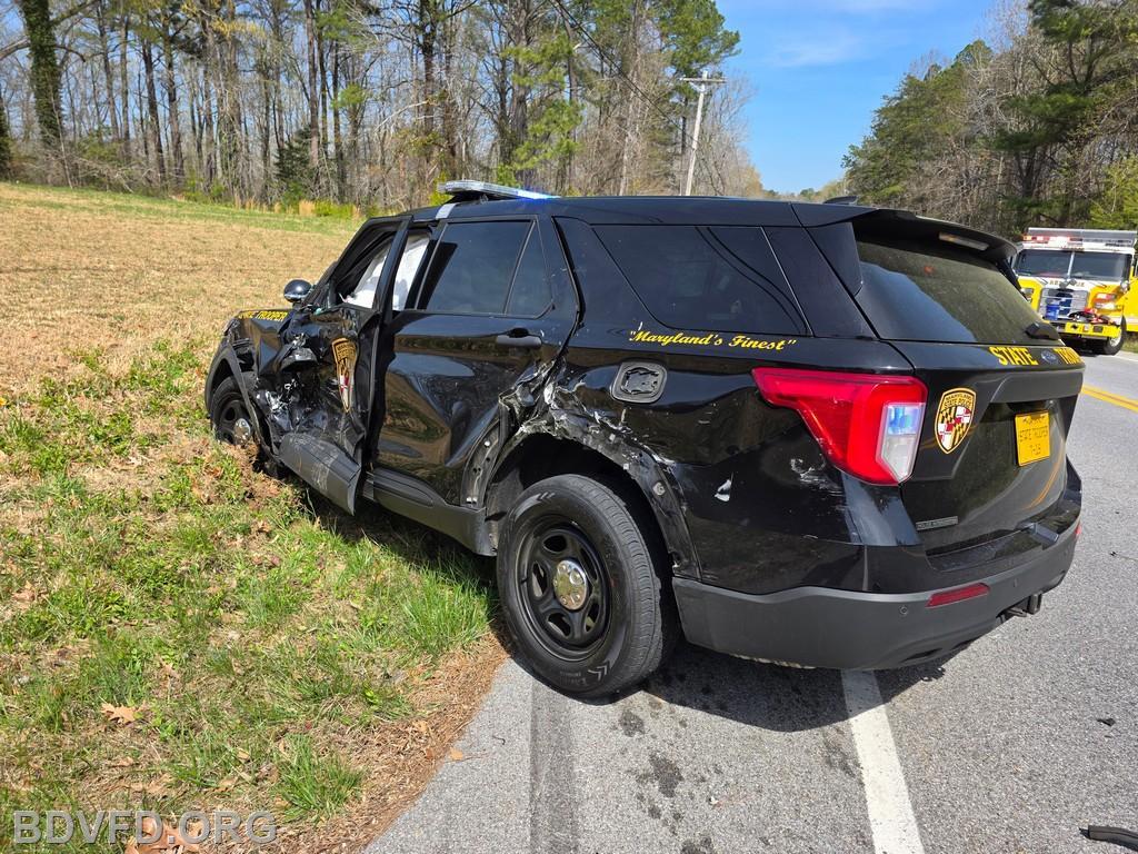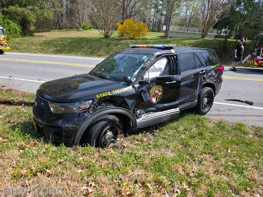 The Maryland State Police trooper sustained injuries as a result of the crash and was transported by Maryland State Police Aviation Command Trooper 7 to an area trauma center for further evaluation and care.