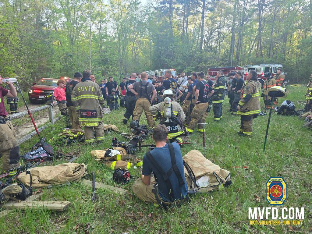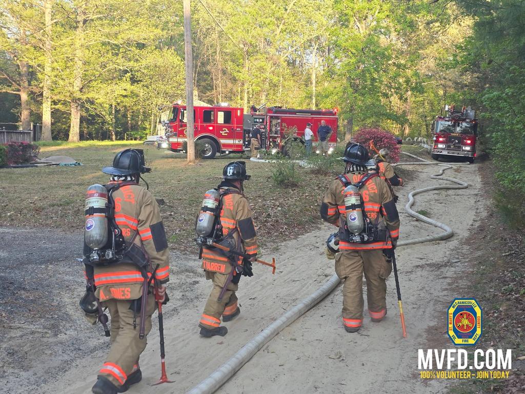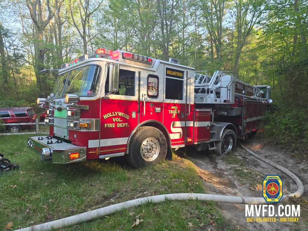 Fire and EMS units from Hollywood, Mechanicsville, Leonardtown, Seventh District, Hughesville, along with the Fire Duty Chief, responded to the incident. Bay District Volunteer Fire Department (Station 9) was dispatched on the initial alarm, with Station 3 added as part of the Working Incident Task Force. Bay District crews operated with Engine Tanker 94, Engine Tanker 34, and Chief 3B.