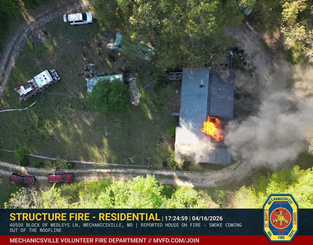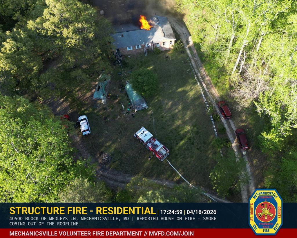 At approximately 17:48 hours on April 16, 2026, firefighters and emergency medical personnel were dispatched to the 40000 block of Medleys Lane for a reported residential structure fire. Multiple callers reported smoke coming from the roofline of a single-story home, prompting a rapid and robust response.